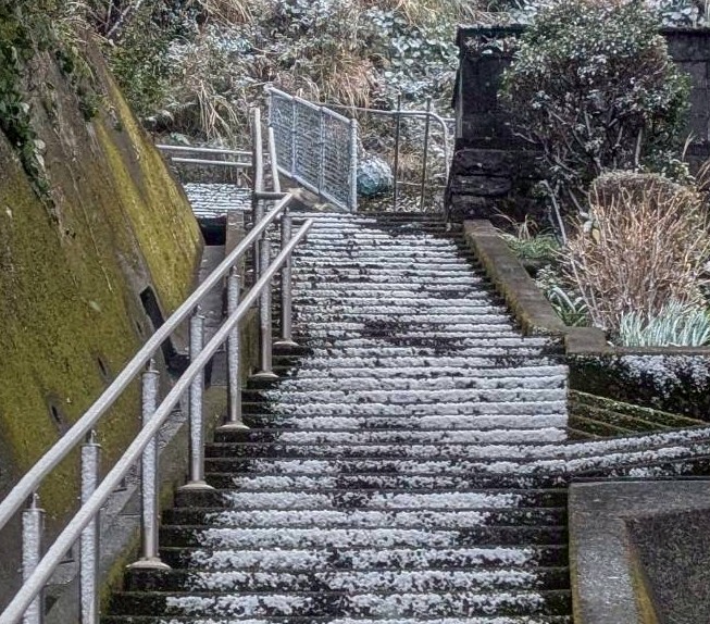黒潮の影響か牟岐町よりもやや暖かく、雪が降っても積もることはなかったため生まれて初めて見る光景に嬉しくなりつい記念撮影してしまいました。